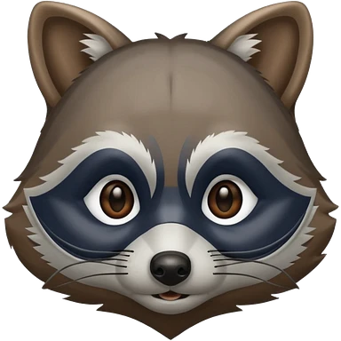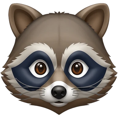 raccoon mascot thinking softly, hand on chin, curious expression, rounded shapes, minimal detail, smooth cartoon shading, ASD-friendly emoji