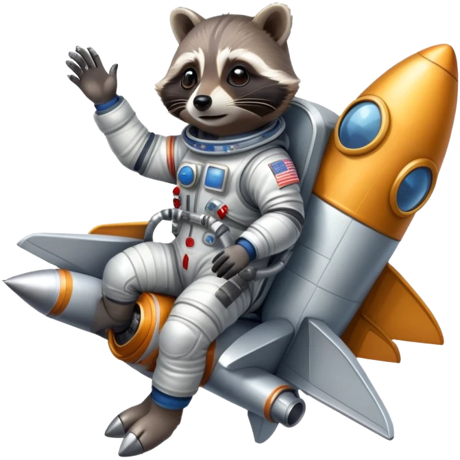 raccoon astronaut riding a rocket emoji | AI Emoji Generator