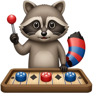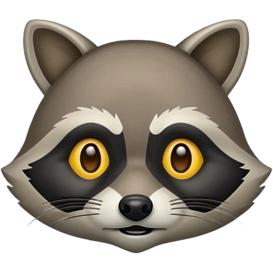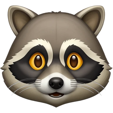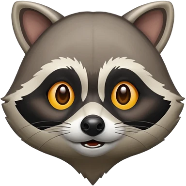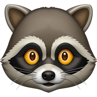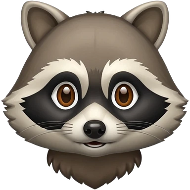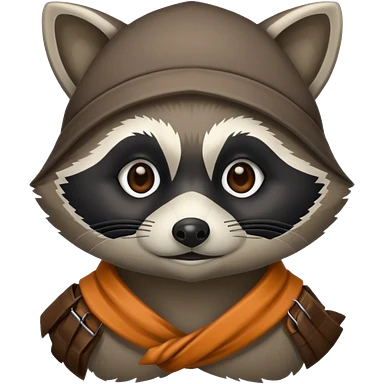 raccoon mascot thinking softly, hand on chin, curious expression, rounded shapes, minimal detail, smooth cartoon shading, ASD-friendly emoji