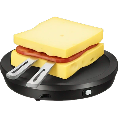 raclette cheese slices, one or two, semi-thick, rectangular, pale yellow, smooth, darker rind on one edge, creamy firm texture, subtle sheen, stacked or fanned, no grill or extras, no faces, clean 3D, soft shadows, transparent background, emoji scale emoji
