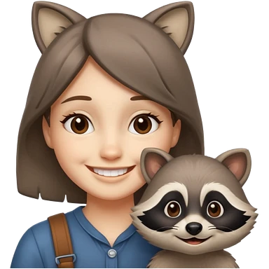 Racoon speaking with a person in cartoon emoji style friendly and calm