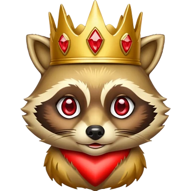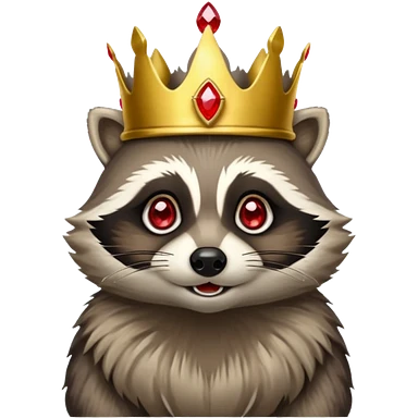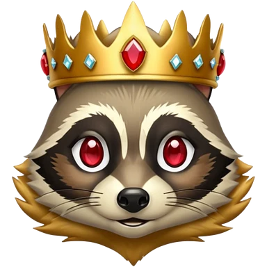 Royal Racoon with gold with red jewelled crown , outline in red emoji
