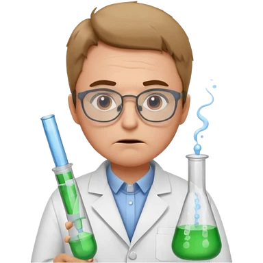 Frowns with Glasses, Angry Scientist: Lab coat, thin glasses, holding test tube, upset expression emoji
