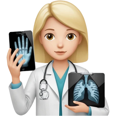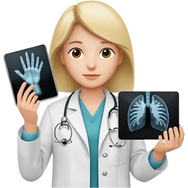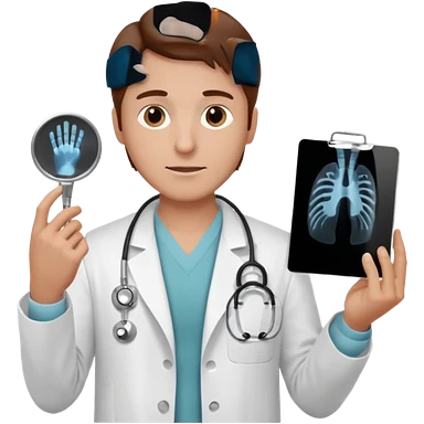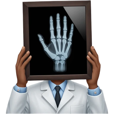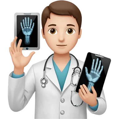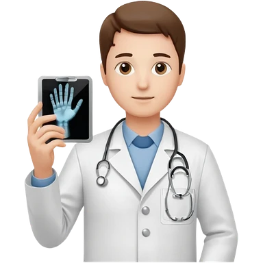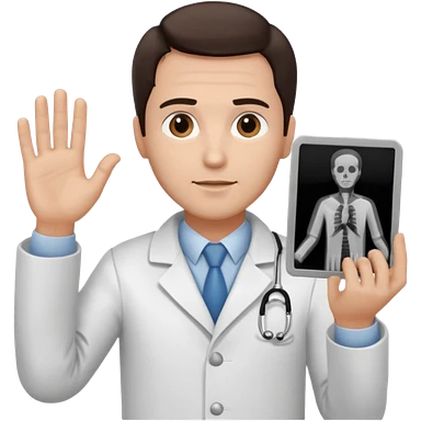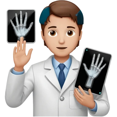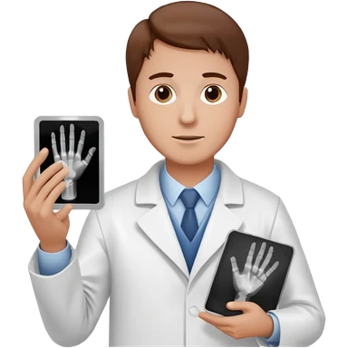 Radiografía de mano sostenida por un médico sin estetoscopio bata blanca piel clara cabello café obscuro emoji | AI Emoji Generator