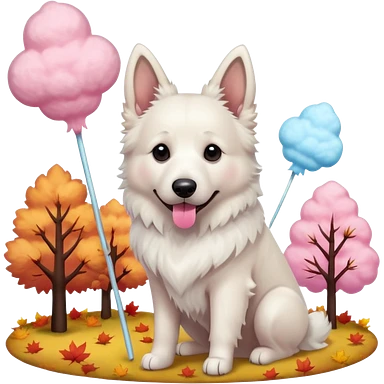 White belgian Shepard In the middle of autumn with Cotton candy emoji