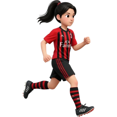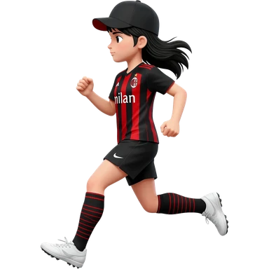Ragazza capelli neri maglia milan e cappellino che corre emoji