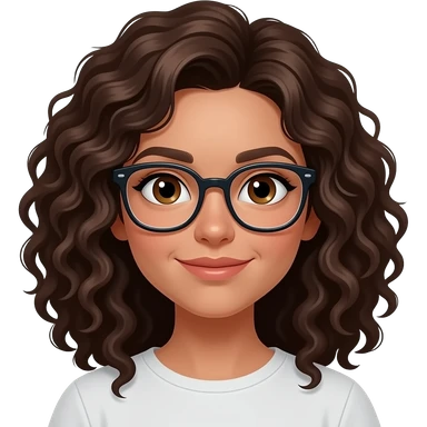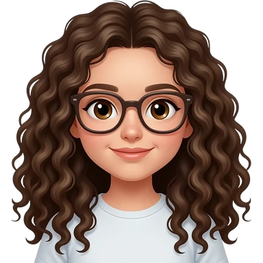 ragazza riccia con capelli lunghi non voluminosi occhi marroni e occhiali mora emoji