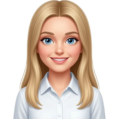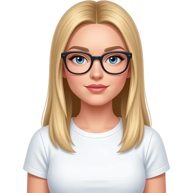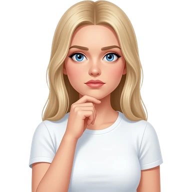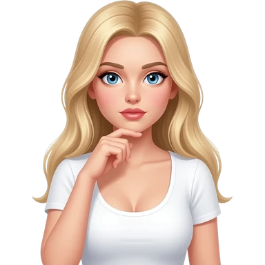 ragazza russa bionda occhi azzurri capelli lisci lunghi, seno prosperoso titubante mano sotto il mento maglietta bianca emoji | AI Emoji Generator