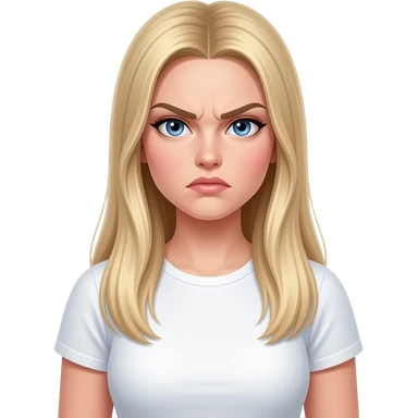 ragazza russa bionda occhi azzurri capelli lisci lunghi, seno prosperoso arrabbiata maglietta bianca emoji