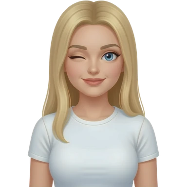 ragazza russa bionda occhi azzurri capelli lisci lunghi, seno prosperoso occhiolino maglietta bianca emoji