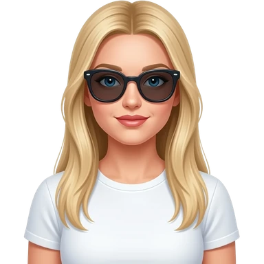 ragazza russa bionda occhi azzurri capelli lisci lunghi, seno prosperoso occhiali da solo fashion stile maglietta bianca emoji