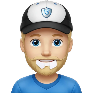 Ragazzo biondo con occhi azzurri e con barbetta bionda e cappello nero con visiera emoji