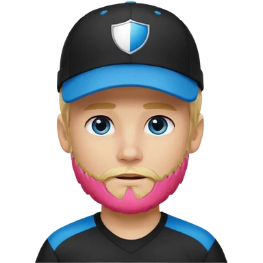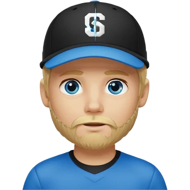 Ragazzo biondo con occhi azzurri e con barbetta bionda e cappello nero sportivo con visiera emoji