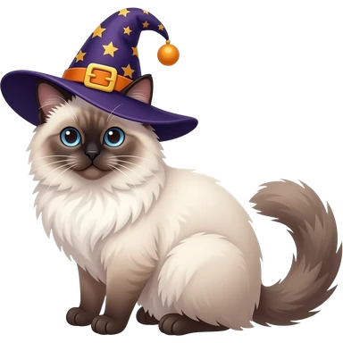 Ragdoll cat with blue eyes and white face with fluffy fir emoji