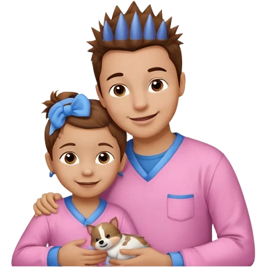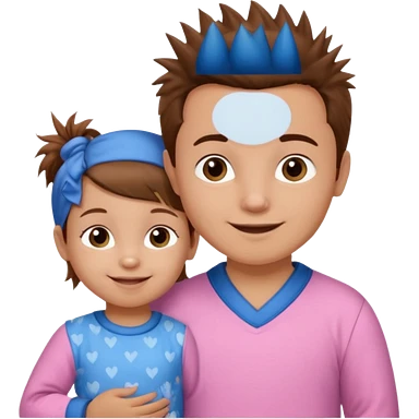 4 year old brown spikey haired boy with blue pajamas with stars on them and a 1 year old brown haired pony tail girl with pink pajamas, and stars on them emoji