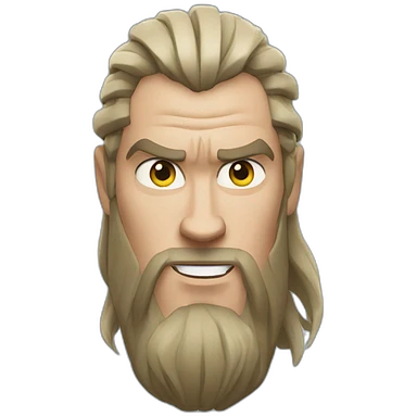 An icon showing a powerful warrior wielding a weapon, inspired by God of War: Ragnarok. The design captures the character’s strength, with dynamic motion lines. A fiery, mythological background with mountains and ruins enhances the epic atmosphere. Transparent background. emoji