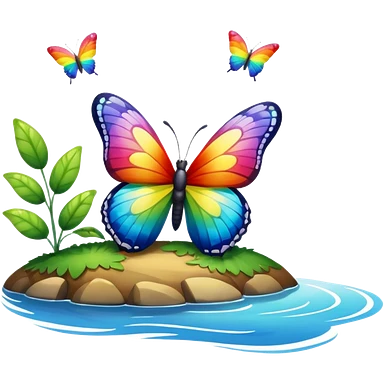 rainbow butterfly on river bank emoji