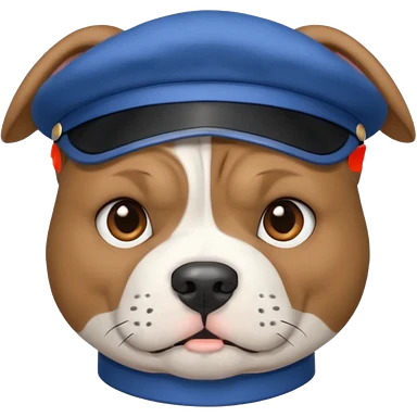 round circle puppy head uniform grey bleu staffy, stupid expression emoji