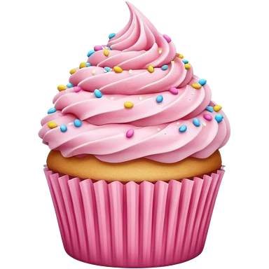 cupcake emoji with pink cake, chocolate icing, and rainbow sprinkles emoji
