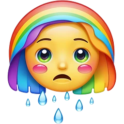 classic yellow crying face emoji with rainbow-colored tears emoji