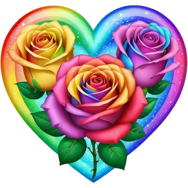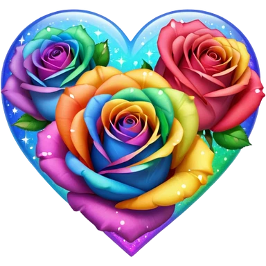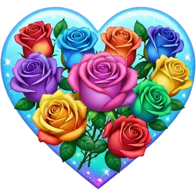 Rainbow heart with rainbow colored roses & sparkles emoji