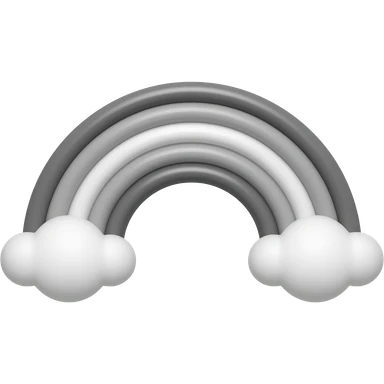 Rainbow emoji but entirely grayscale, with black clouds on both ends of the rainbow emoji