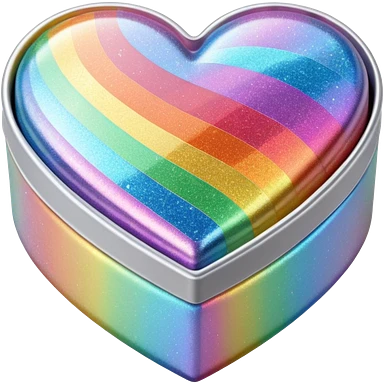 3D isolated, rendering, 8k resolution, 1x1, 8000x8000 pixels, transparent background, no emoji faces, Heart shaped box wrapped in silver metallic paper with 3D appearance holographic rainbow prismatic effect glitter cute emoji