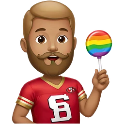 Gay pride 49ers fan licking rainbow lollipop emoji