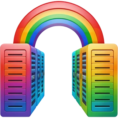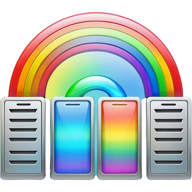 A Christmas tree with rainbow colors spread from inside to out with a middle Christmas tree shape hole emoji