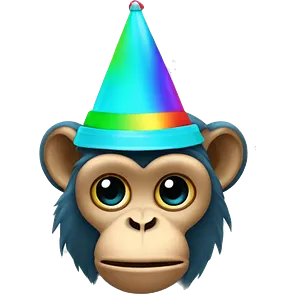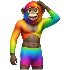 rainbow monkey, sparkle, neon, cartoon style, cute emoji