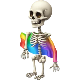 Purple teddy bear wearing a rainbow shirt with skeleton on teeth and metal spikes emoji