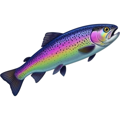 rainbow trout fish bright saturated purple blue green yellow white with scales and black speckles emoji | AI Emoji Generator