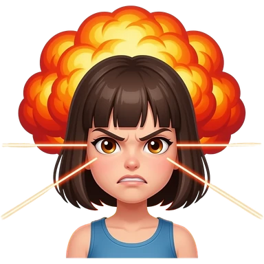 fury of a wailing angry teen girl shooting laser beams and igniting mushroom cloud emoji