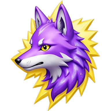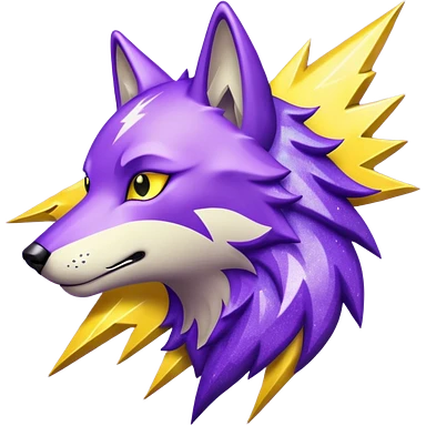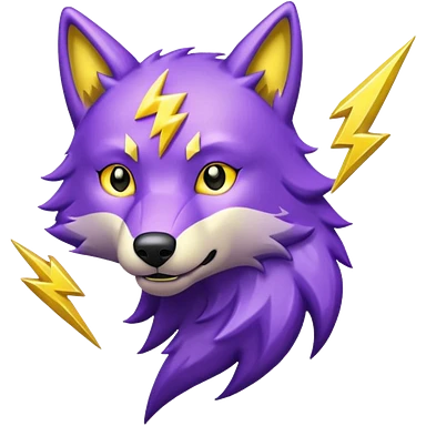 Purple wolf with a yellow lightning bolt emanating from its eyes. Glitter texture everywhere. emoji