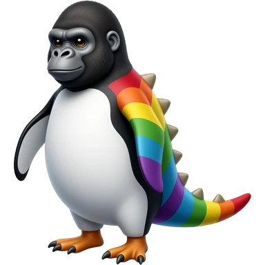 Rainbow penguin wearing a Gorila mask with horse legs with a dinosaur tail emoji