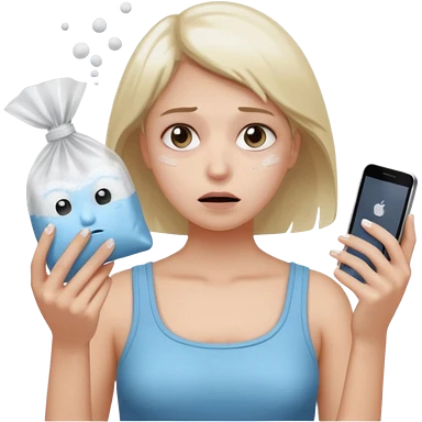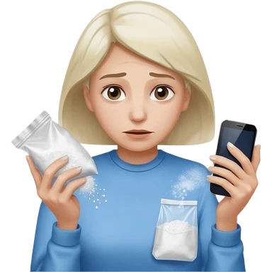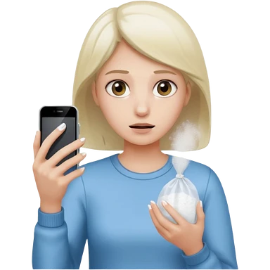 she's anxious , has a transparent tiny pastic bag full of white powder, and her phone in the other hand emoji