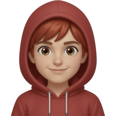 A character wearing a red hoodie pulled down, red hair. emoji