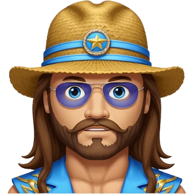 Randy Macho Man Savage with blue eyes, long brown hair emoji