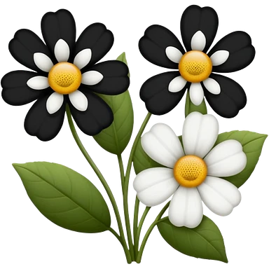 Un chico dándole un ramo de flores a una chica con flequillo emoji