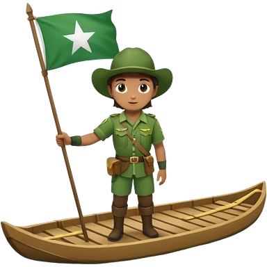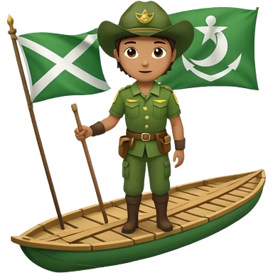ranger on a wooden raft with a white flag emoji | AI Emoji Generator