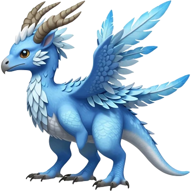 Raptorik scaley feathery horned Amaura-Aurorus-Pokémon-Fakémon-hybrid-fusion-creature, full body emoji
