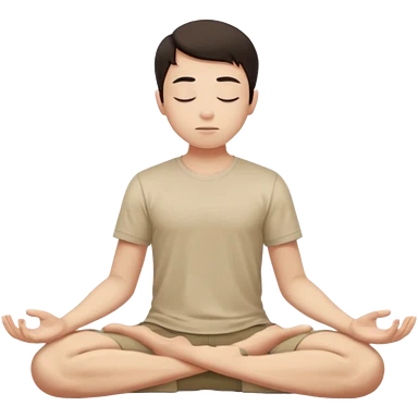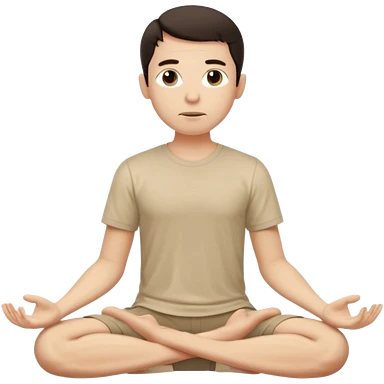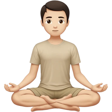 rapaz magro cabelo escuro, camiseta bege e bermuda bege escuro, corpo inteiro meditan emoji | AI Emoji Generator
