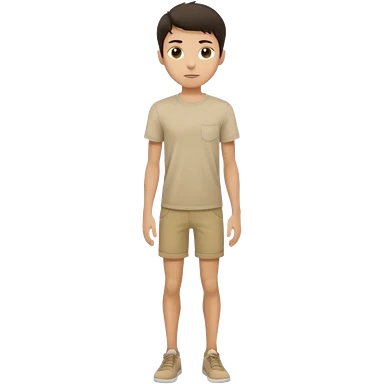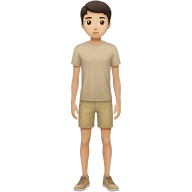 rapaz magro cabelo escuro, camiseta bege e bermuda bege escuro, em pé de corpo inteiro emoji