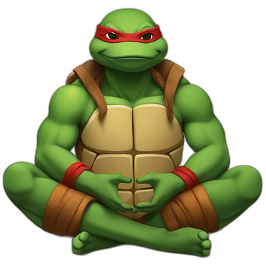 Raphael TMNT doing a meditation upside down hanging from a web emoji