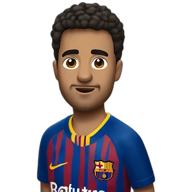 Raphinha Barcelona football player dribbling a football wearing Barcelona kit short hair emoji