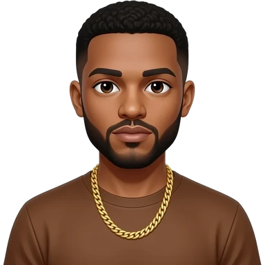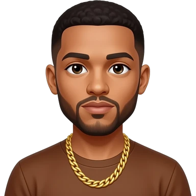 create an emoji of a young mixed-race Moroccan rapper with a diamond chain on his neck dressed in a Lacoste tracksuit. his mid-length brown curly hair and a small budding mustache emoji
