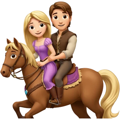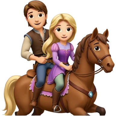 Rapunzel and Flynn Rider, riding on a horse emoji | AI Emoji Generator