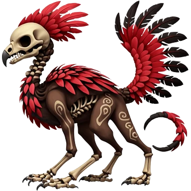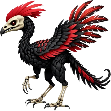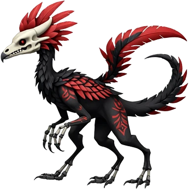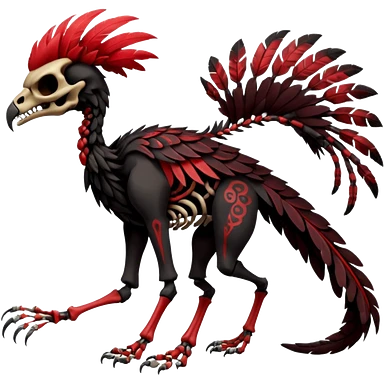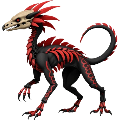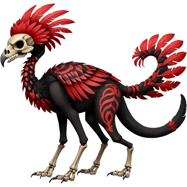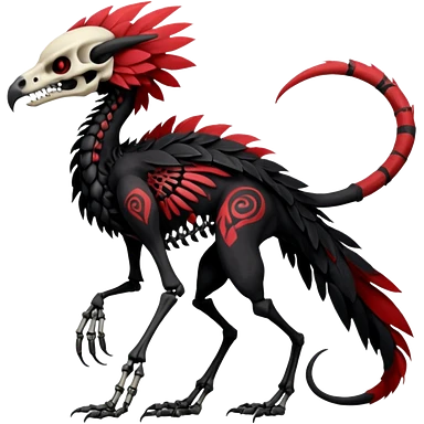 Rare black and red realistic dark edgy tropical tribal patterned feathery skeletal badass epic handsome gorgeous aesthetic colorful vibrant Vernid-Trico-species-Fakemon-creature by LiLaiRa, 4 legs, 1 tail, random markings, (full body) emoji | AI Emoji Generator