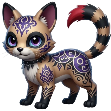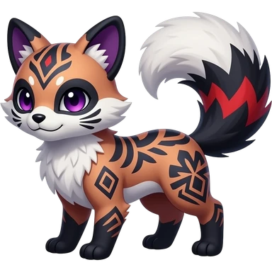 Rare black and red realistic dark edgy tropical tribal patterned feathery skeletal badass epic handsome gorgeous aesthetic colorful vibrant Vernid-Trico-species-Fakemon-creature by LiLaiRa, 4 legs, 1 tail, random markings, (full body) emoji | AI Emoji Generator