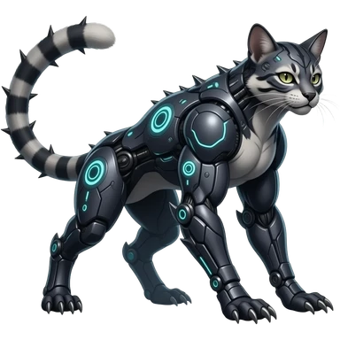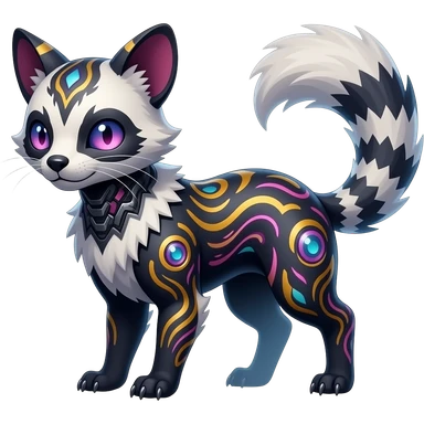Rare warm-colored exotic edgy epic aesthetic gloomy spooky dark modern colorful cyber-Genet-Trico-Civet-species-Fakemon-hybrid-creature, with beautiful intricate markings, full body emoji